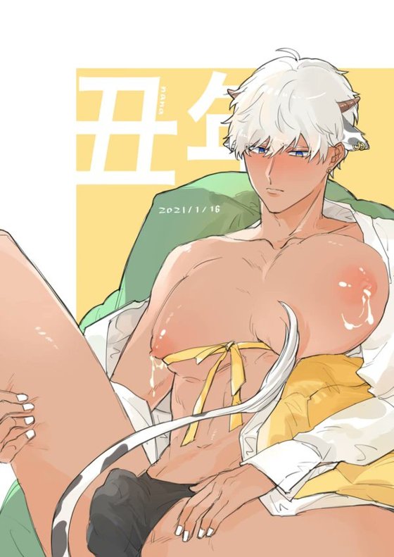 两条舌头分开时扯出一条黏糊糊的银丝。亲吻以后他看起来已经是不能思考的样子,你又低下头吮吸他另一侧的nai水。